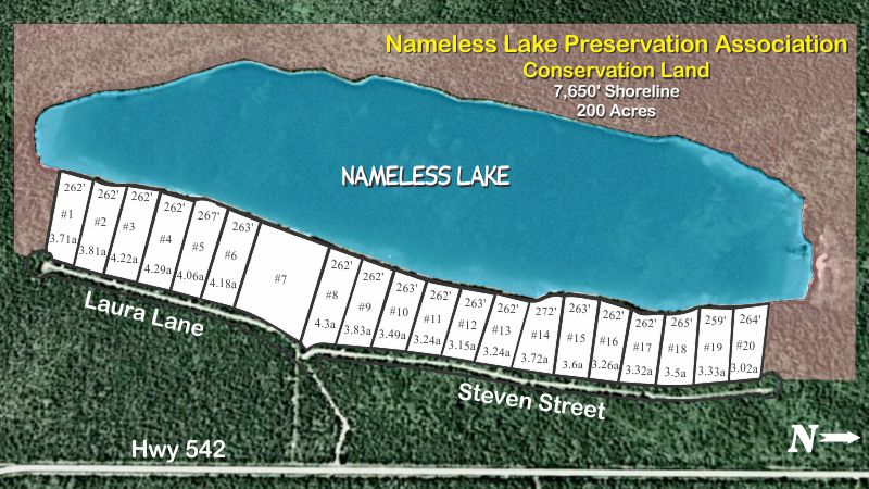 The Nameless Lake Preservation Association welcomes you to our unique lakefront development designed for those who treasure privacy amidst the ambience of nature. Located within a 600 acre wilderness preserve on Manitoulin Island, each waterfront parcel features a sunset view of the deep, spring-fed waters of Nameless Lake.